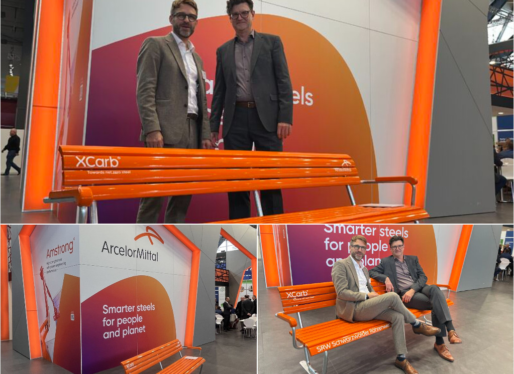 Landi Bank, ein Designklassiker von BURRI public elements AG, ausgestellt in Halle 10 – Stand 10311, ist gefertigt aus Präzisionsstahlrohren von SRW Schwarzwälder Röhrenwerk® und nun hergestellt aus XCarb®-Stahl von ArcelorMittal mit niedrigen CO₂-Emissionen.